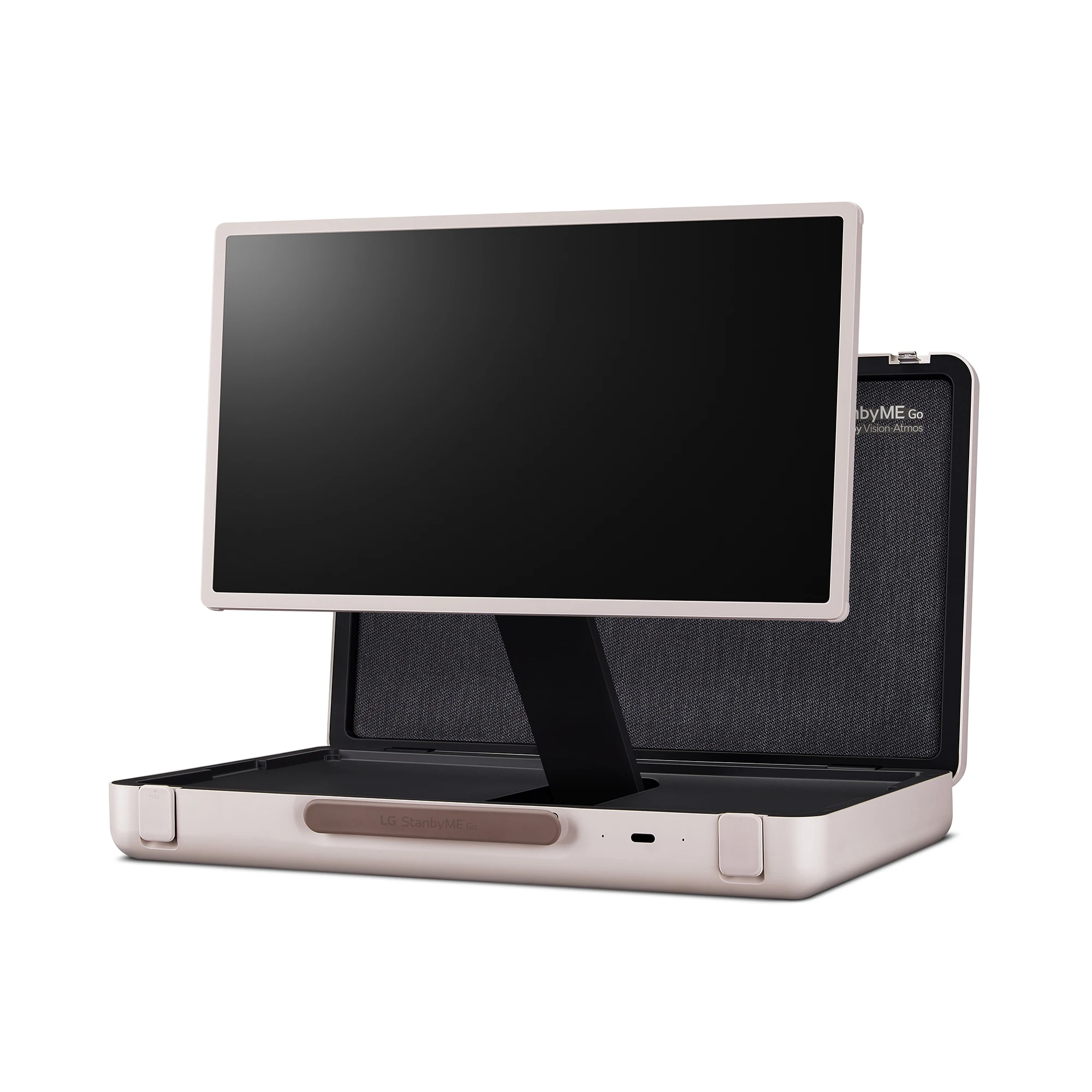 가방 형태의 케이스와 일체형으로 가로,세로 전환에 터치까지 되는 LG 스탠바이미 Go TV입니다.